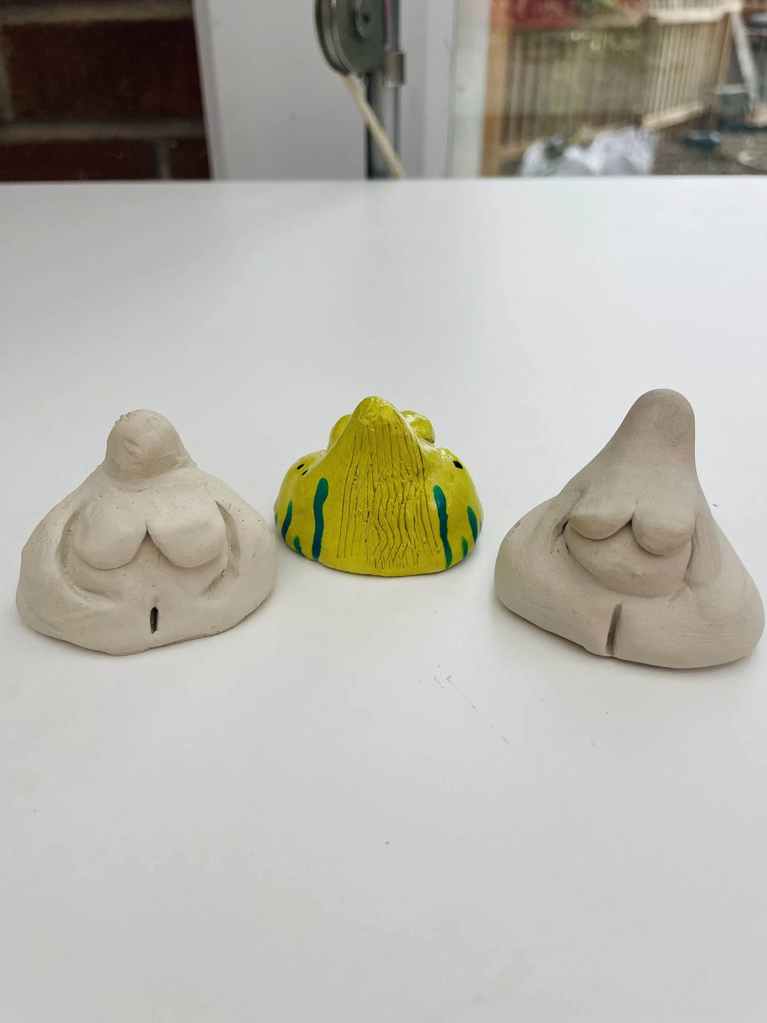 An eclectic mix of art, crafts, and oddities, mostly made from clay.