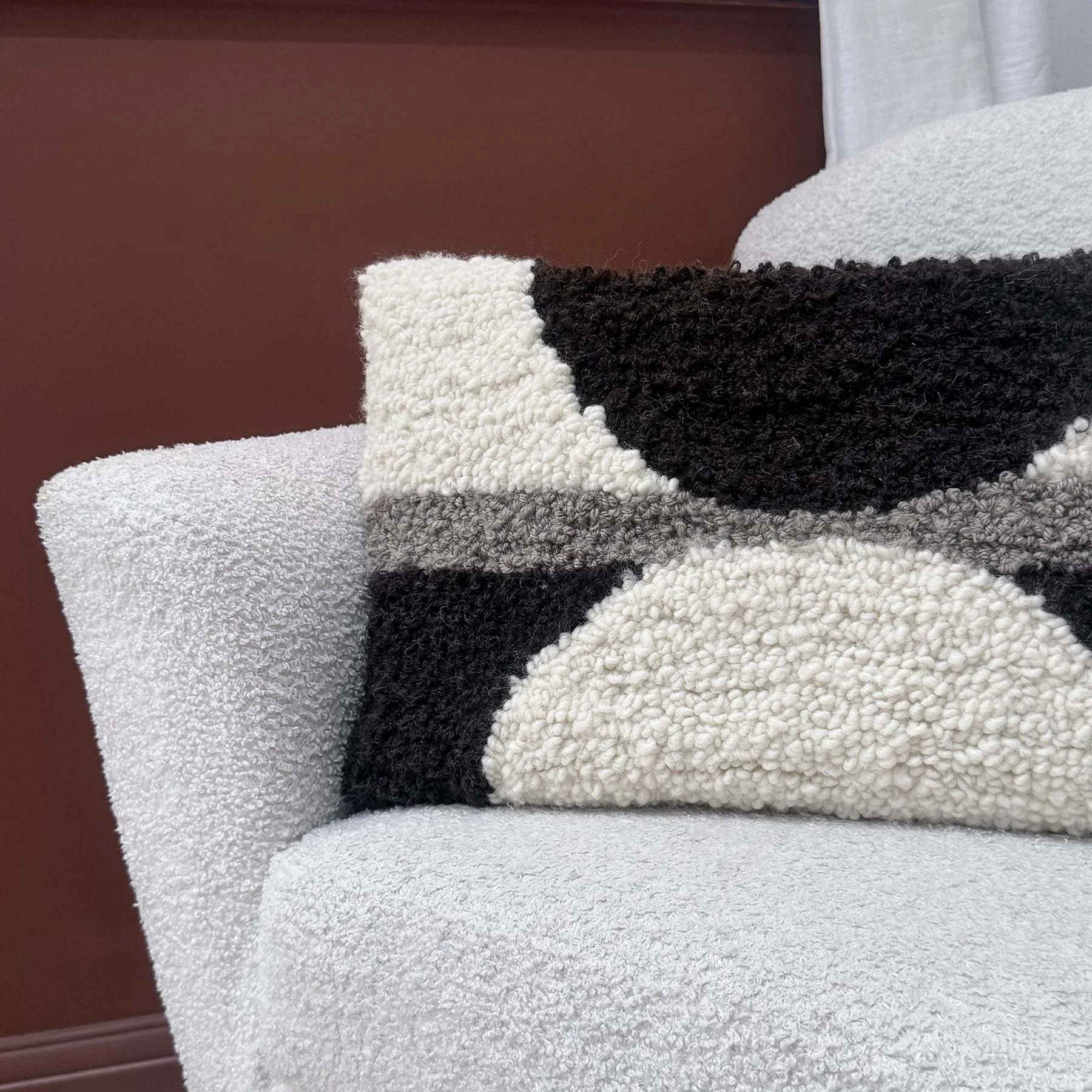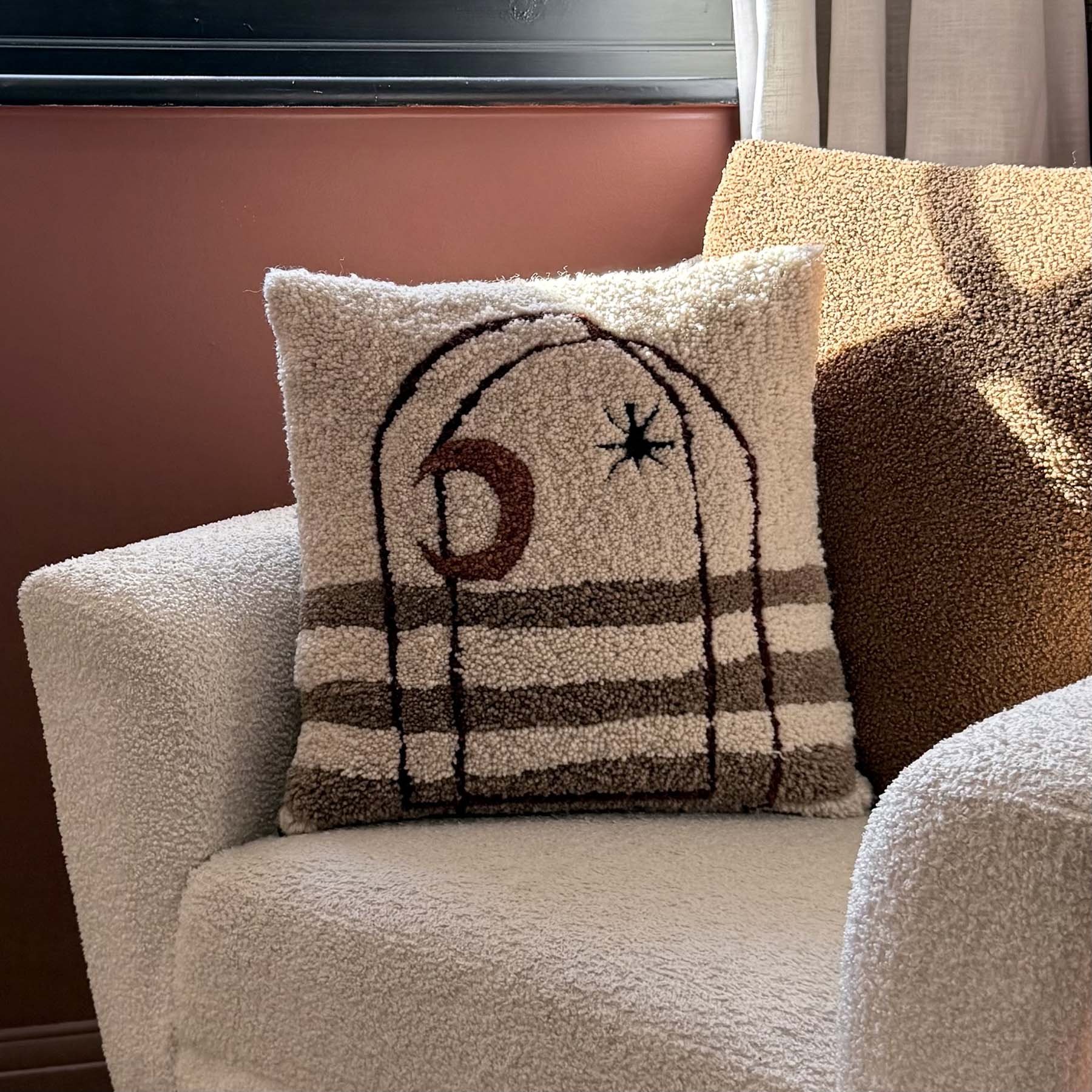 Contemporary textile art exploring sculptural form, spatial balance and warm, natural earth tones.
